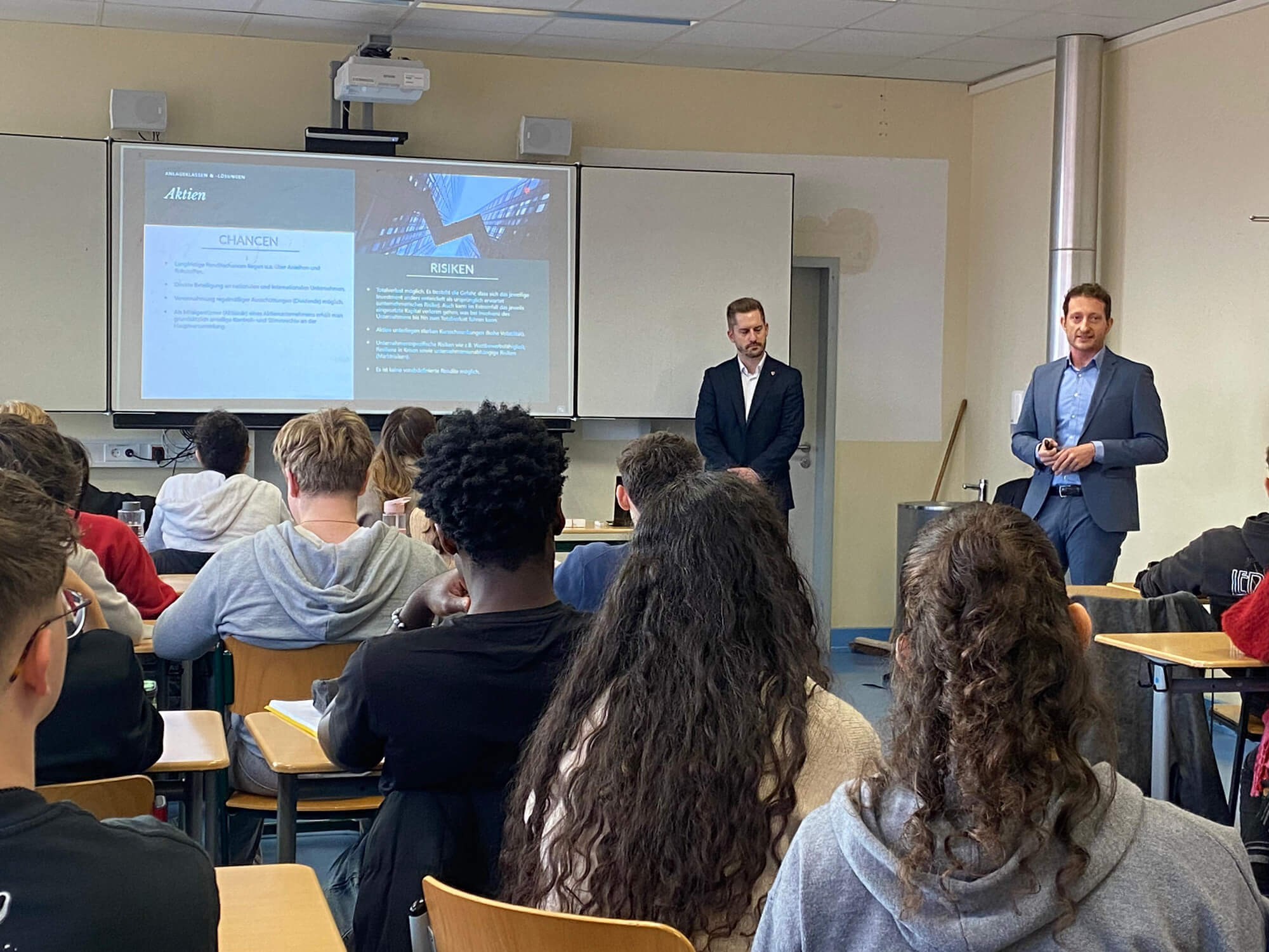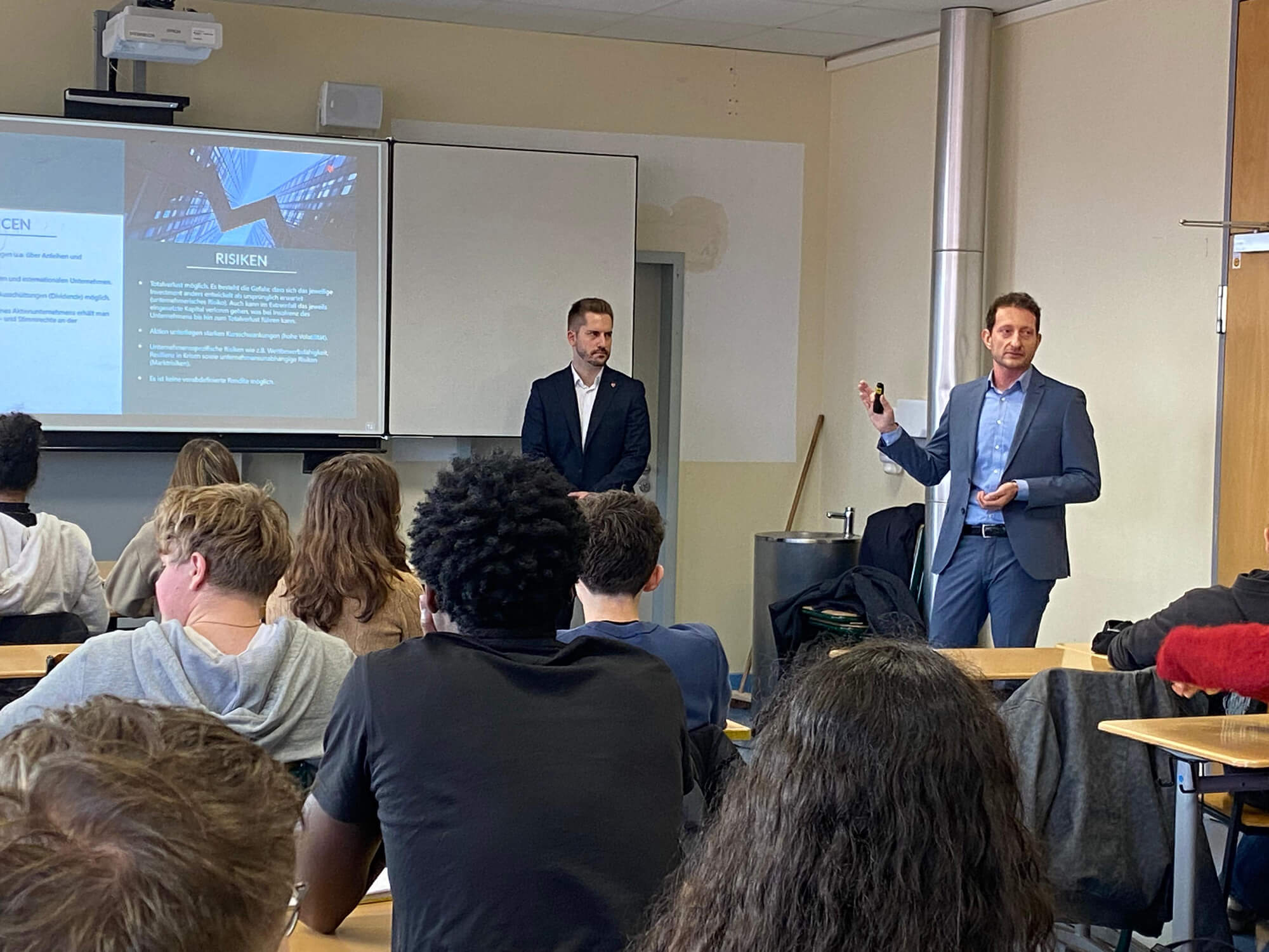 Gemeinsam hielten sie einen aufschlussreichen Vortrag über die Funktionsweise von Finanzprodukten an der Börse und wiesen dabei insbesondere auf die Risiken hin, die mit zu spekulativen Anlagen verbunden sind.