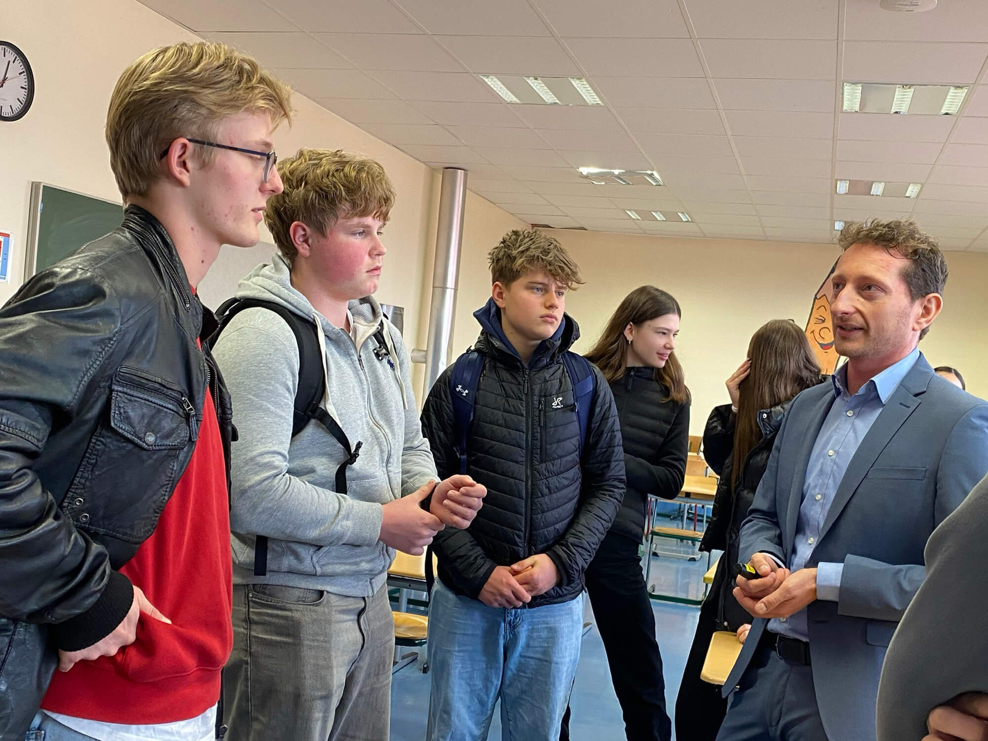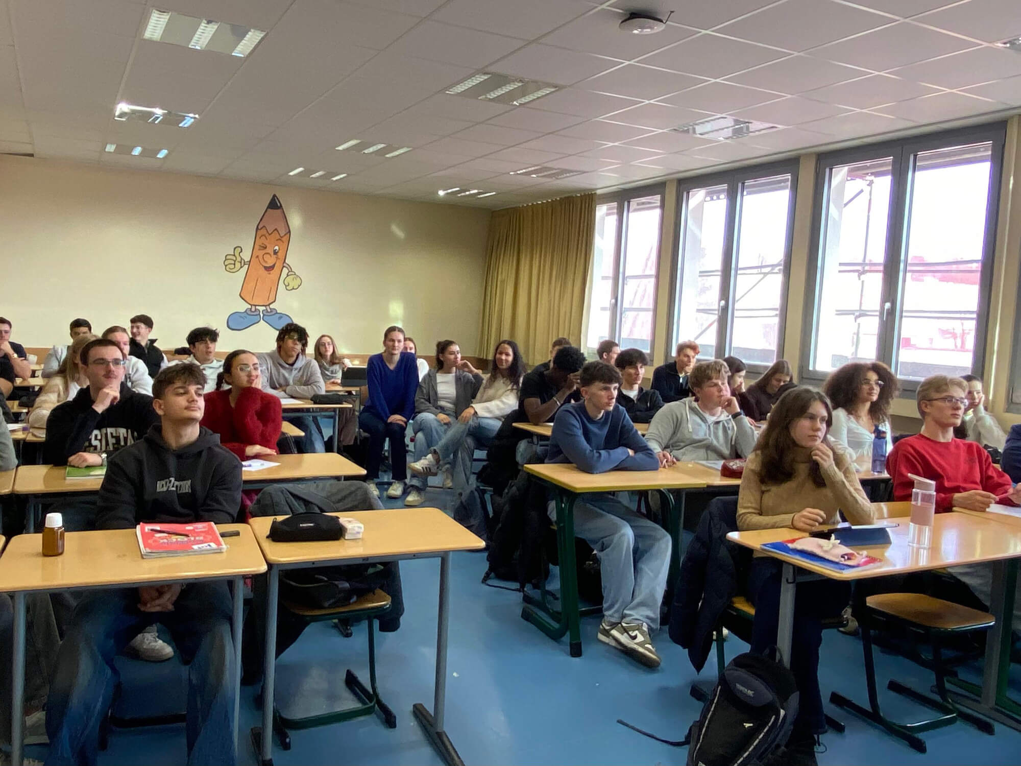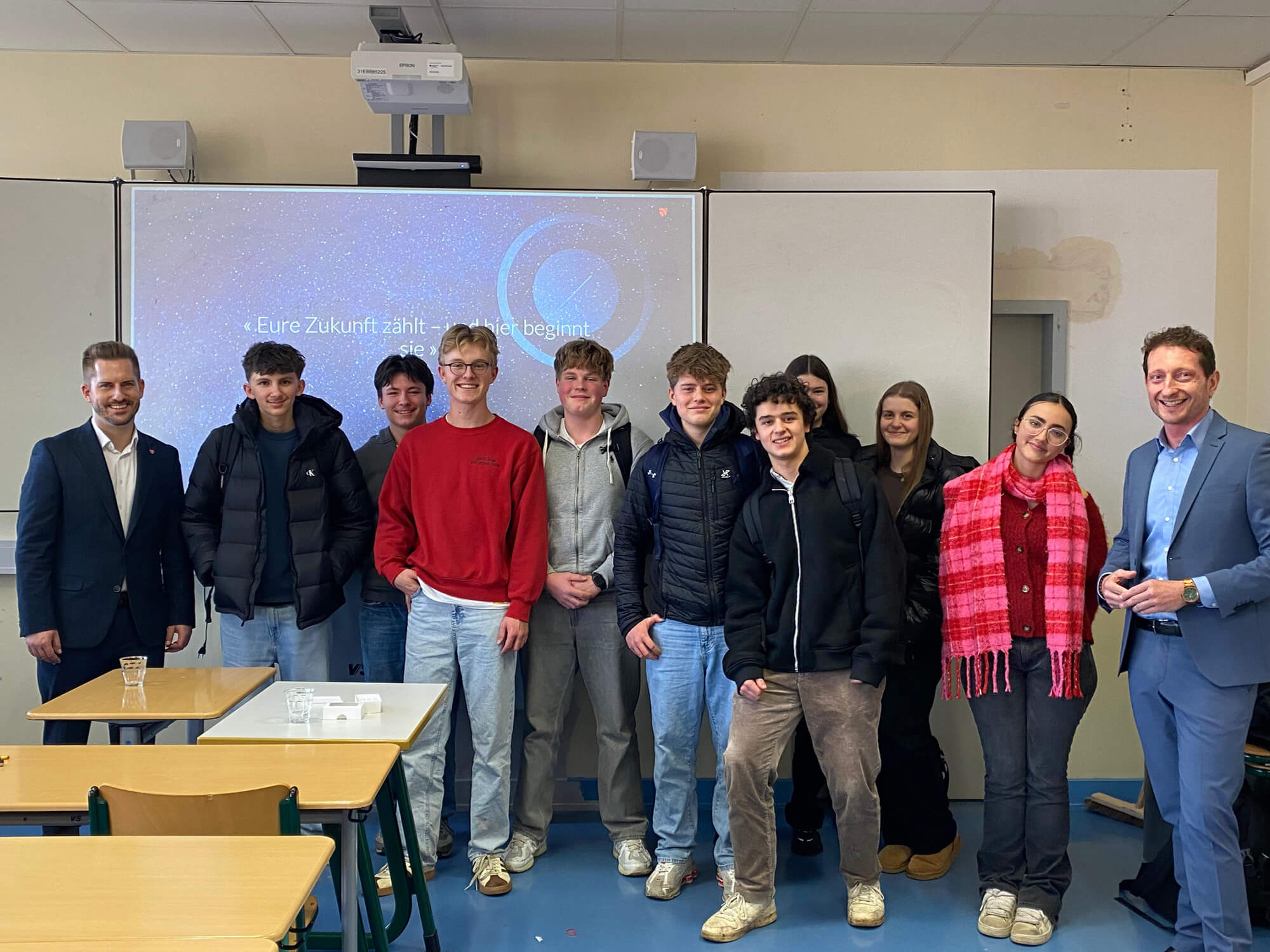 Im Rahmen des Unterrichts in Wirtschafts- und Sozialwissenschaften (SES) hatten die Schülerinnen und Schülerinnen und Schüler der 11. und 12. Klassen die Gelegenheit, zwei Vertreter aus der Bankenwelt zu kennenzulernen. Am Freitag, den 12. Dezember 2025, stellten Christian Gregorius, Leiter des Teams Private Wealth Management/Operations Middle Office, und David Spurk, Ausbildungsleiter bei ODDO BHF Solutions, den Schülern großzügig ihr Fachwissen und ihre Erfahrungen zur Verfügung.